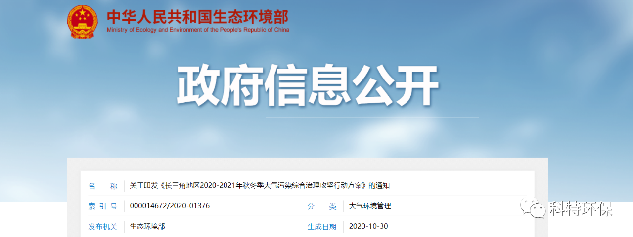 生態(tài)環(huán)境部、國家發(fā)展和改革委員會(huì)、工業(yè)和信息化部等10部門與上海、江蘇、浙江、安徽等4省(市)人民政府聯(lián)合印發(fā)《長三角地區(qū)2020-2021年秋冬季大氣污染綜合治理攻堅(jiān)行動(dòng)方案》(以下簡稱《行動(dòng)方案》)